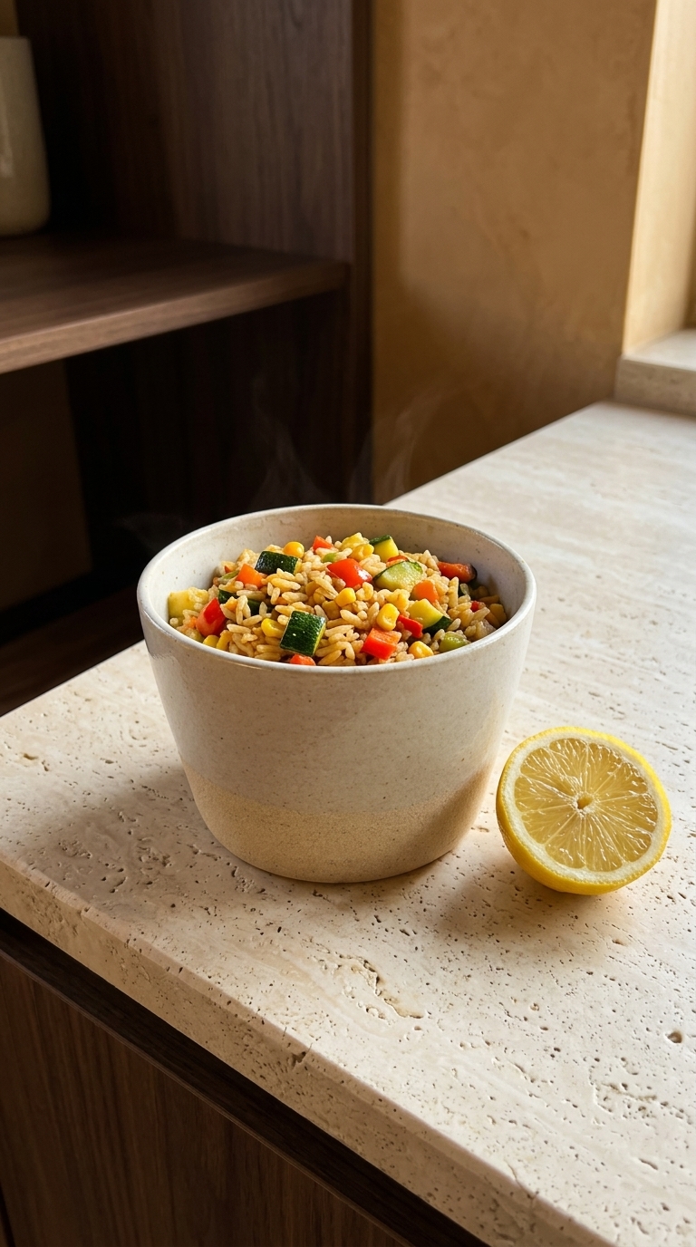 Avevo tipo mezzo peperone, delle zucchine avanzate e un pacco di riso integrale che stava lì da settimane. Niente di speciale, cioè proprio la dispens…