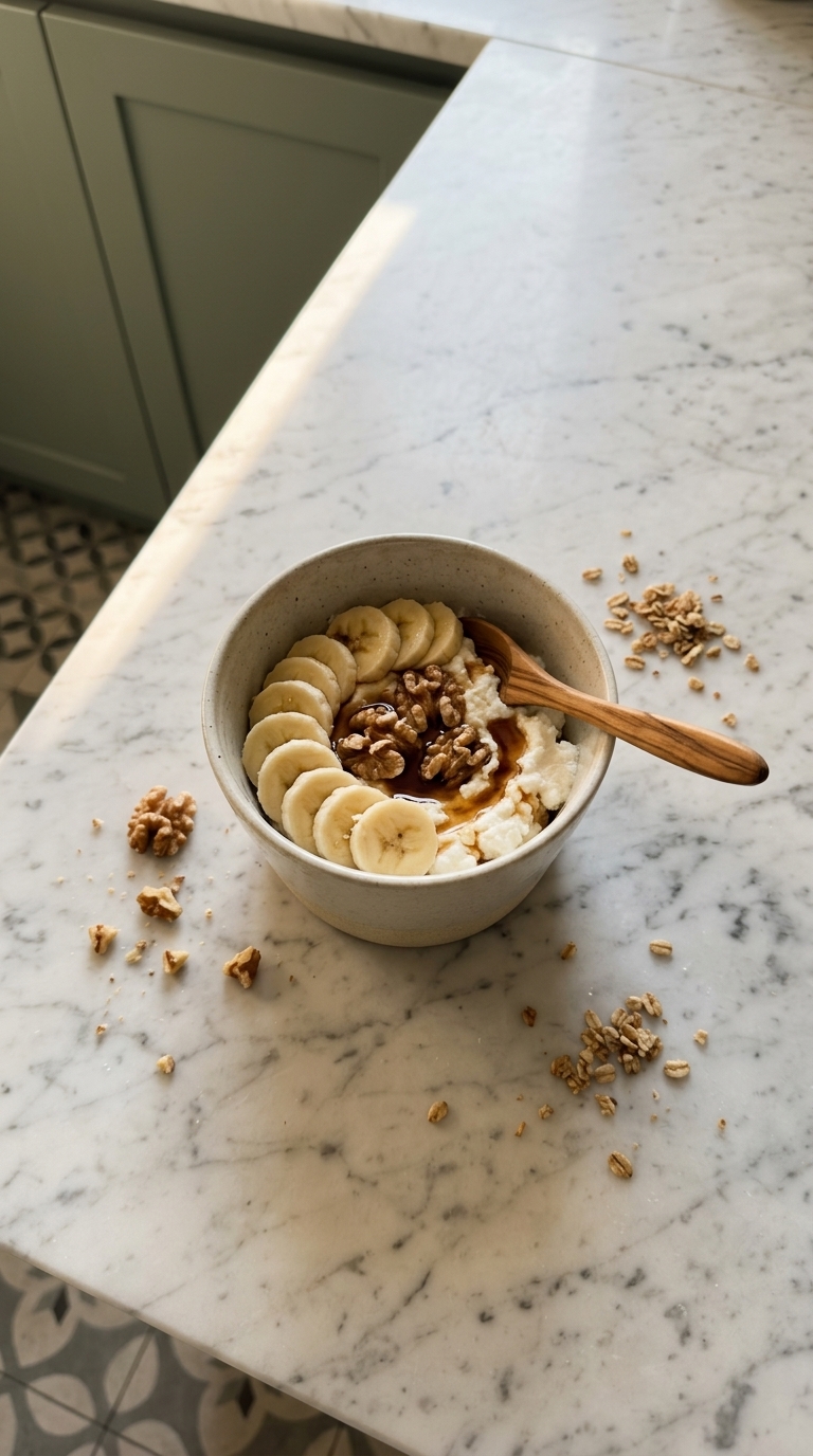 ricotta, miele, noci e una banana a fette. finisce lì. cioè sono tornata dalla palestra oggi tipo morta e non avevo voglia di cucinare niente, zero,…