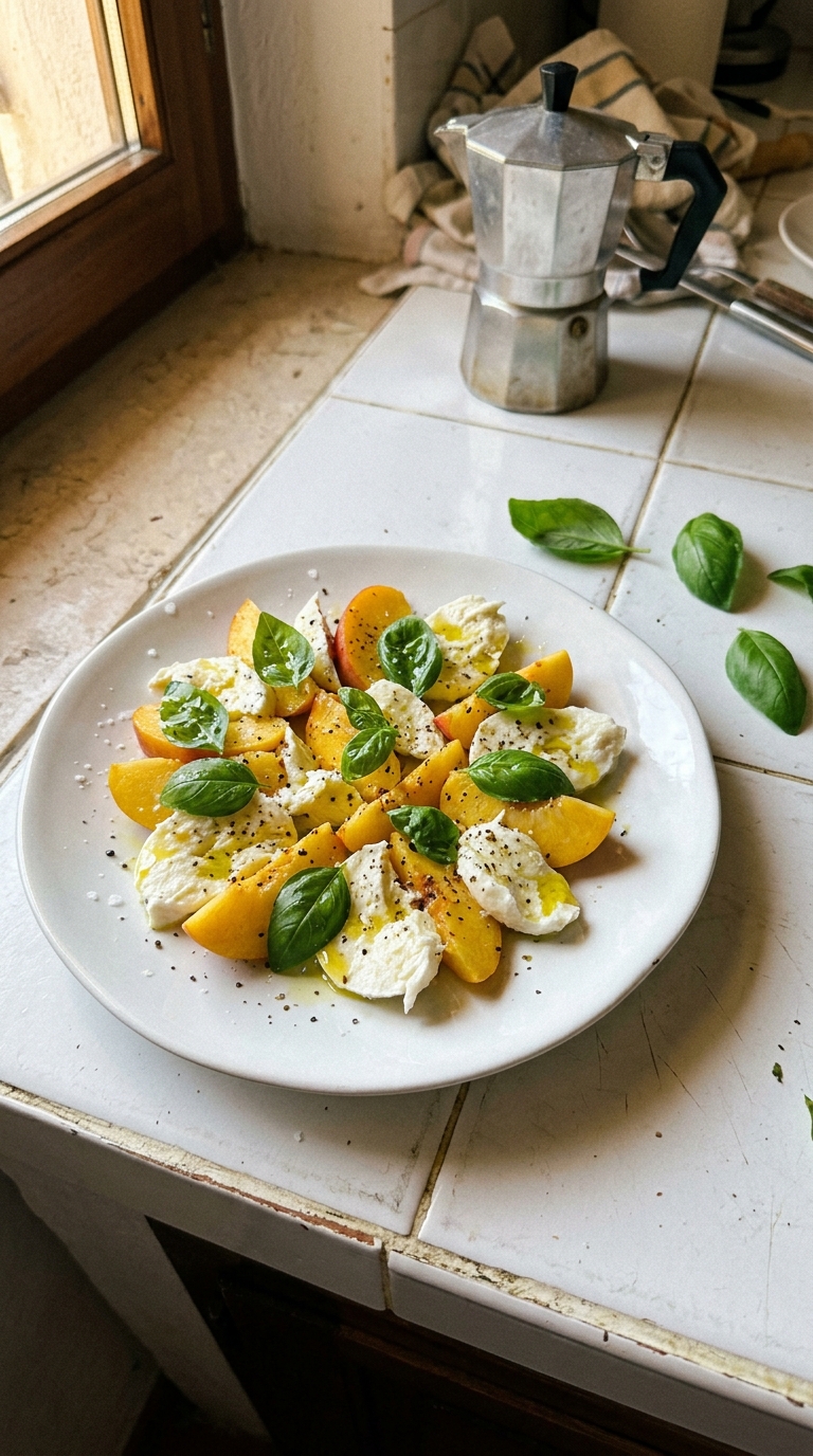 Stamattina avevo due pesche quasi troppo mature e una mozzarella in frigo. Fine delle opzioni. Ho fatto a fette le pesche, strappato la mozzarella a…