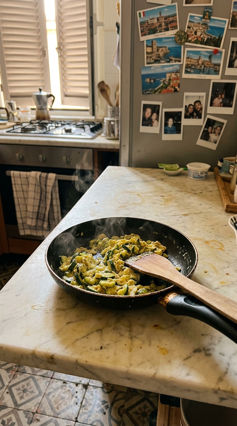 Francesca era fuori e io avevo tipo zero voglia di cucinare ma anche zero voglia di ordinare pizza alle 22. Allora: due zucchine tagliate sottili in…