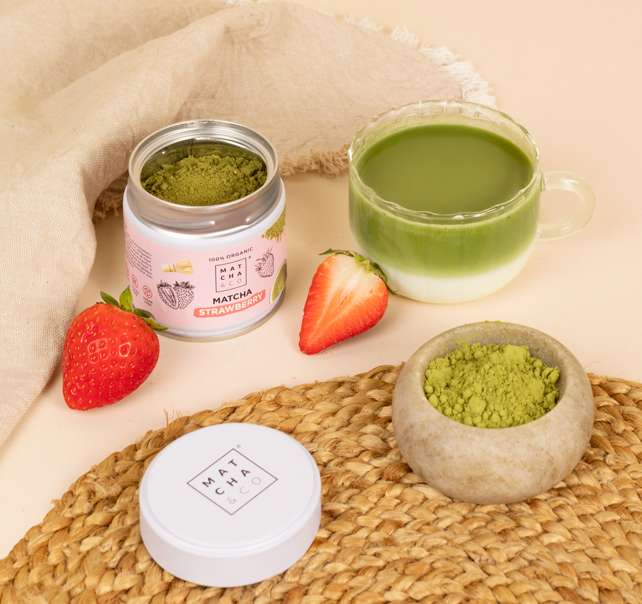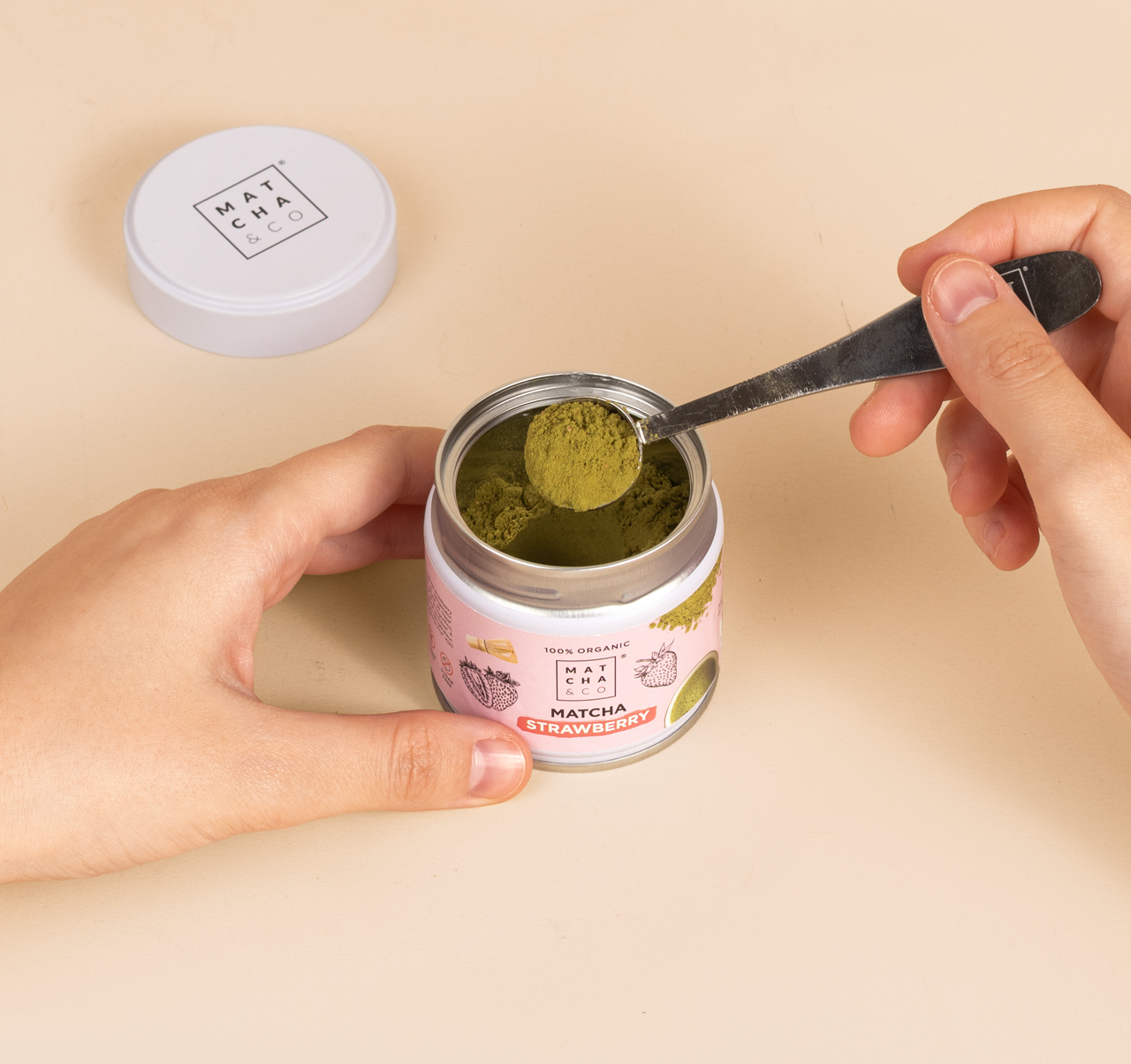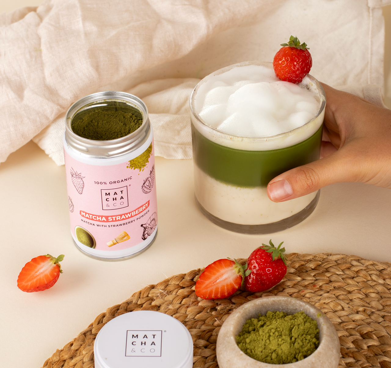 Een perfecte mix van biologische aardbei voor wie nieuw is met matcha.